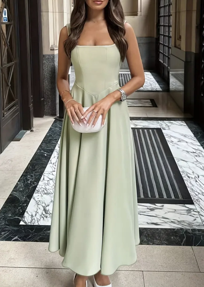 Elegant Mint Green Maxi Dress for Women – Sleeveless, Flowing Design Dress