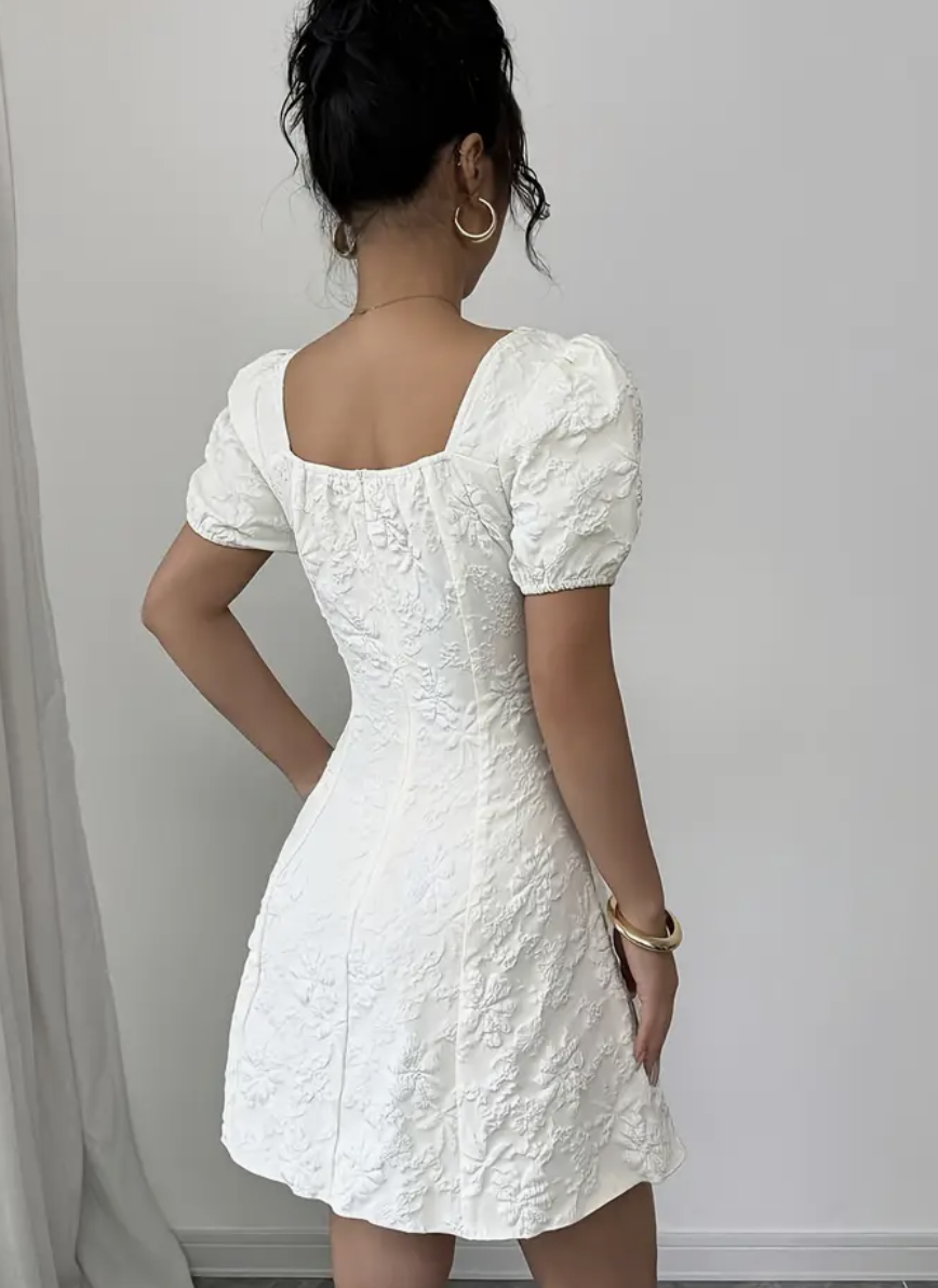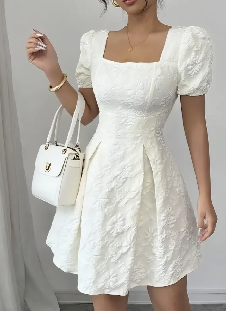 Women’s Elegant Floral Jacquard Dress – Flattering Fit & Flare Silhouette, Square Neck Formal & Casual Outfit