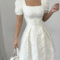 Women’s Elegant Floral Jacquard Dress – Flattering Fit & Flare Silhouette, Square Neck Formal & Casual Outfit