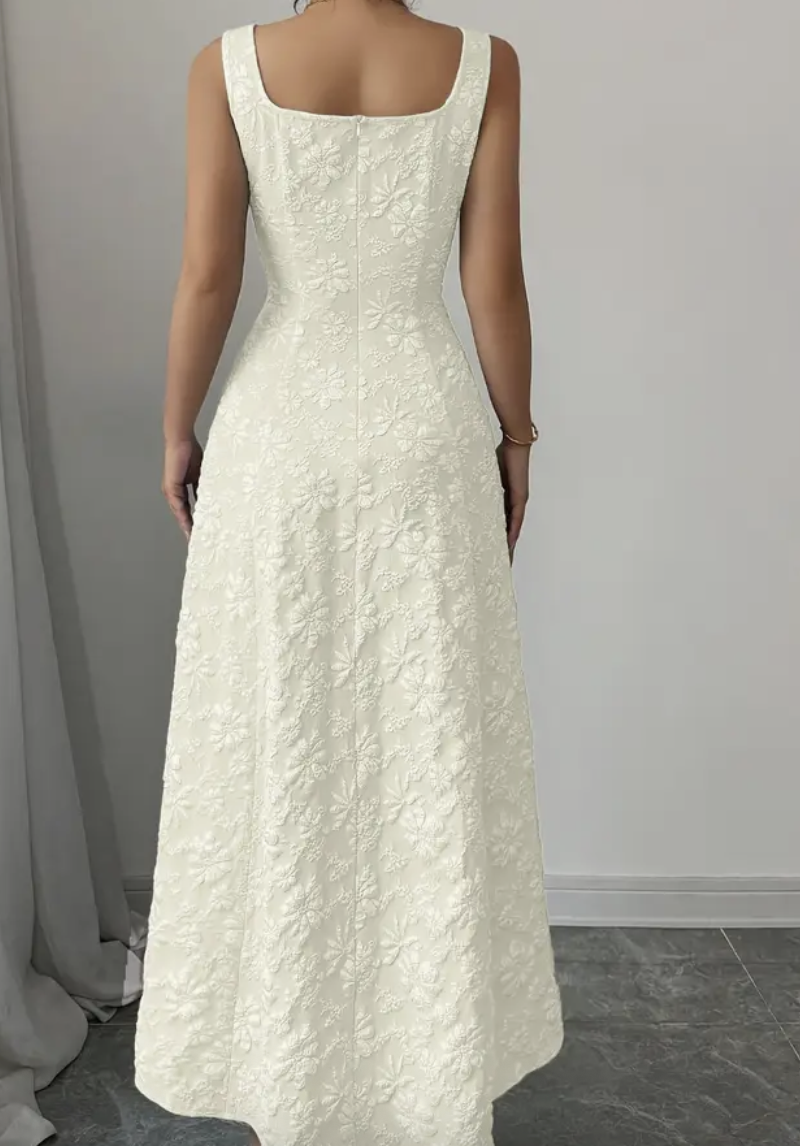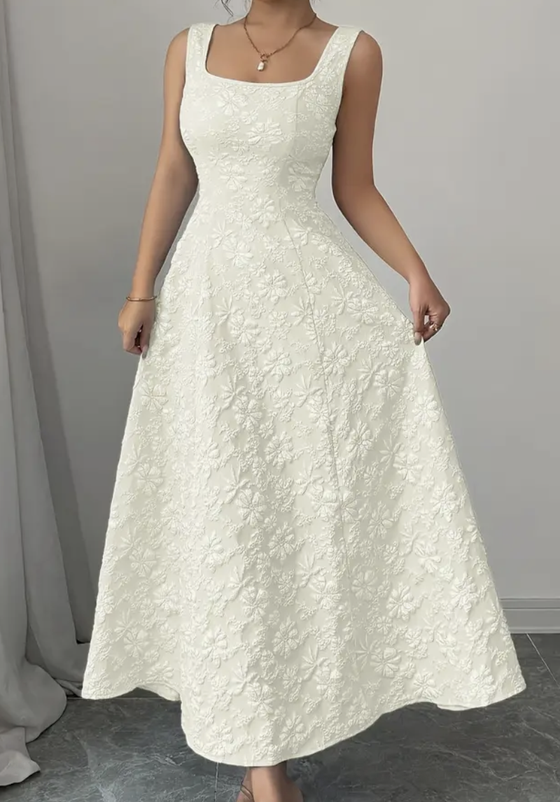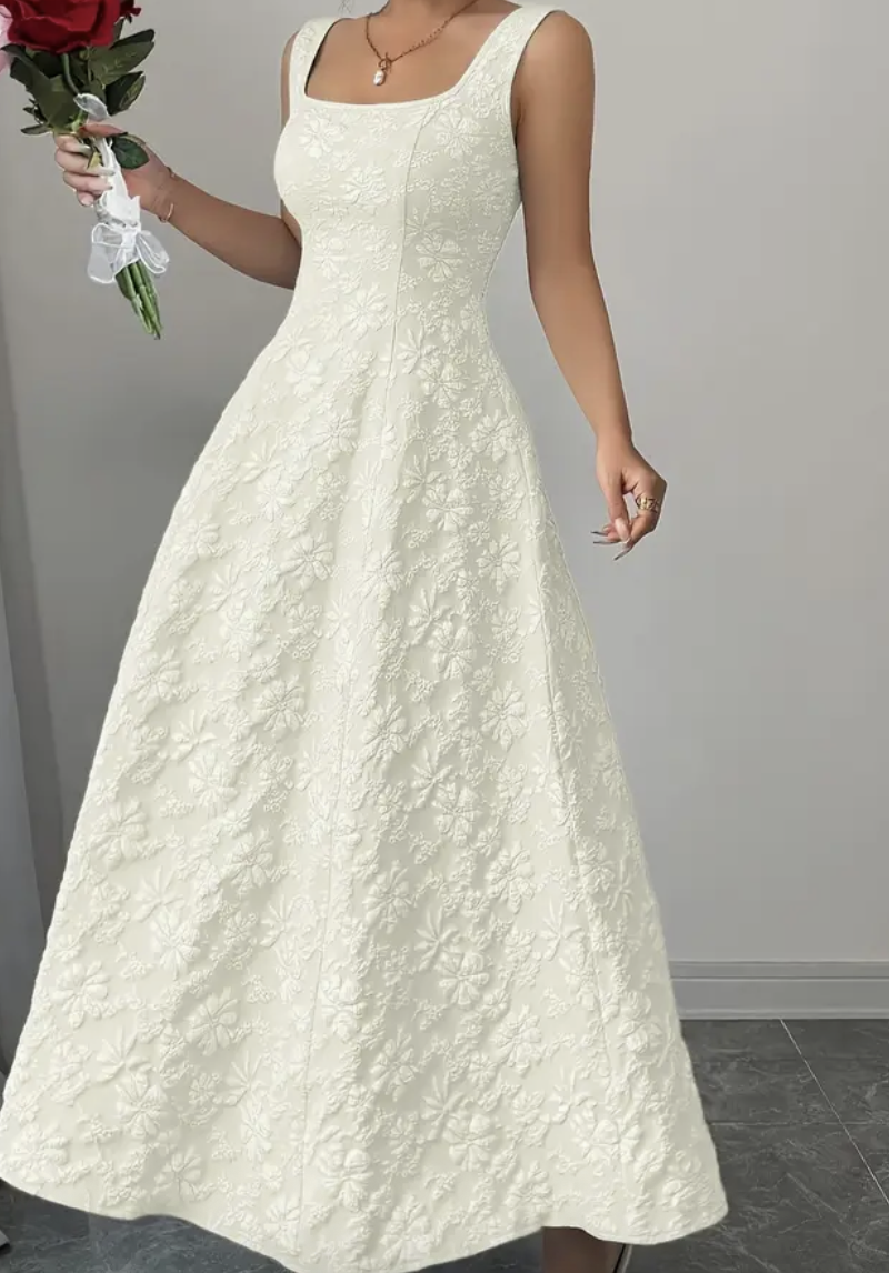 Wide Strap Textured Floral Weaving Slim-Fit Midi Dress, Elegant And Sophisticated, Youthful And Versatile Dress
