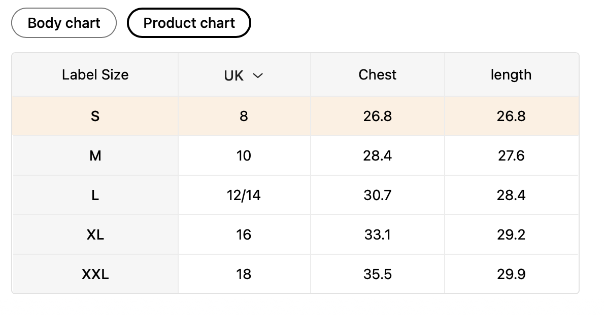 sizes