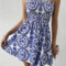 Women’s Navy Blue & White Paisley Print Smocked Off-Shoulder Dress