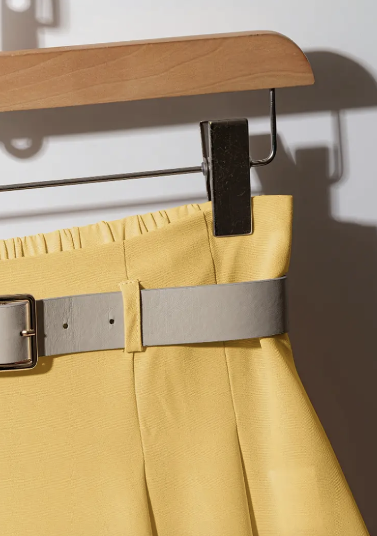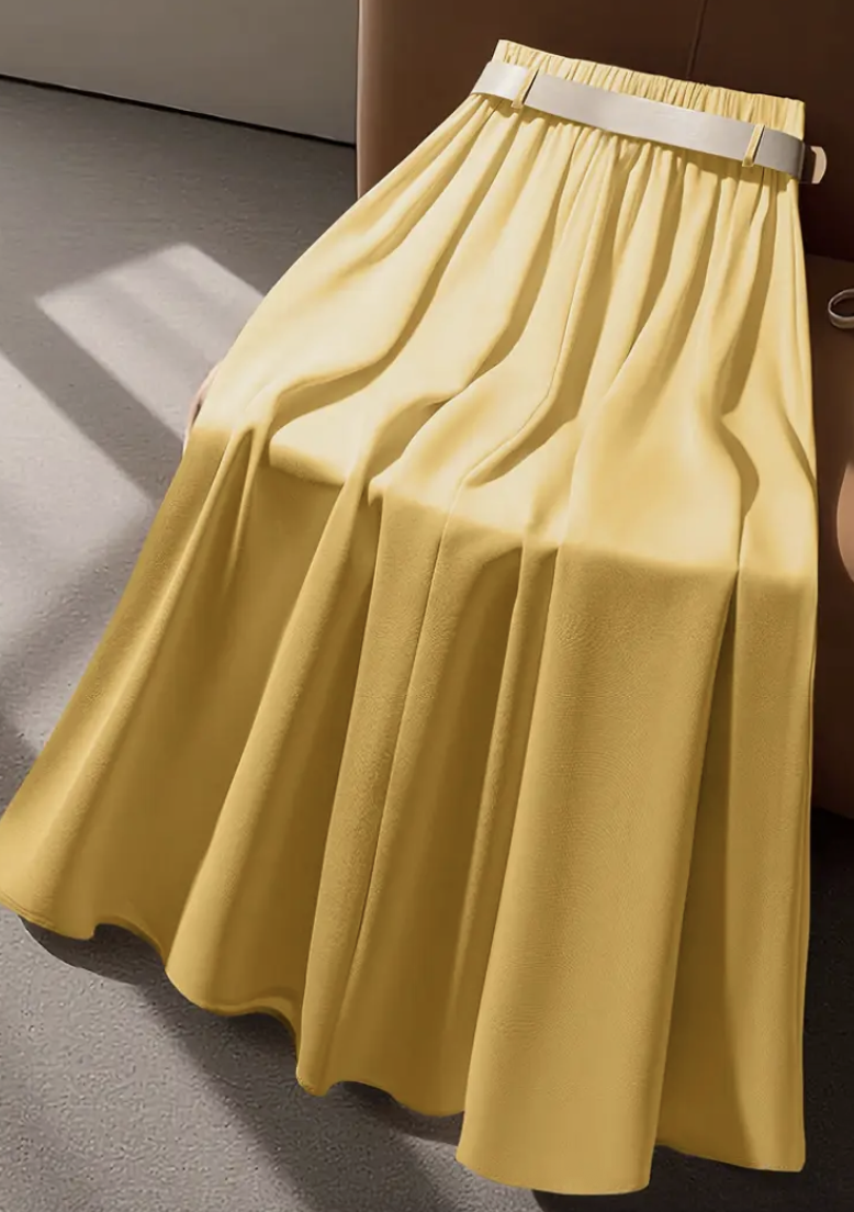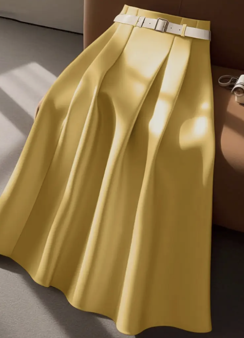 Summer Trendy Beige Belted Midi Skirt with a High Waist And Pleats